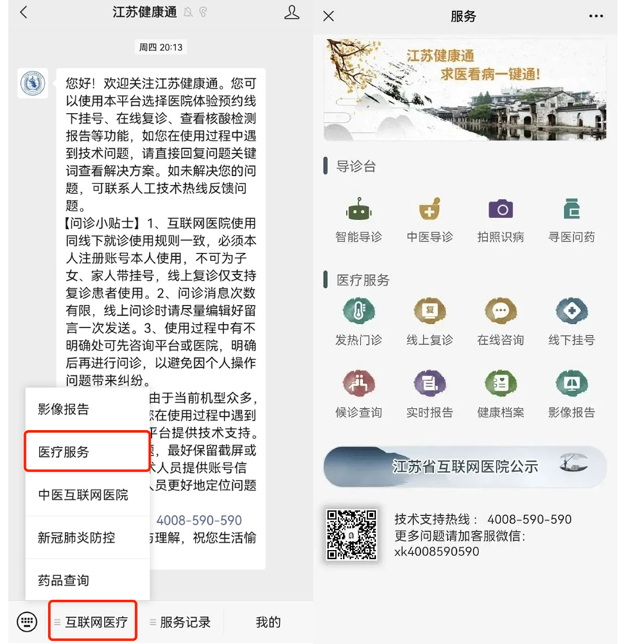 1、关注“江苏健康通”微信公众号;