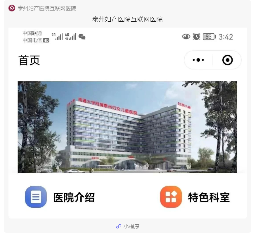 搜索“泰州妇产医院互联网医院”小程序,进入“泰州妇产医院互联网医院”。